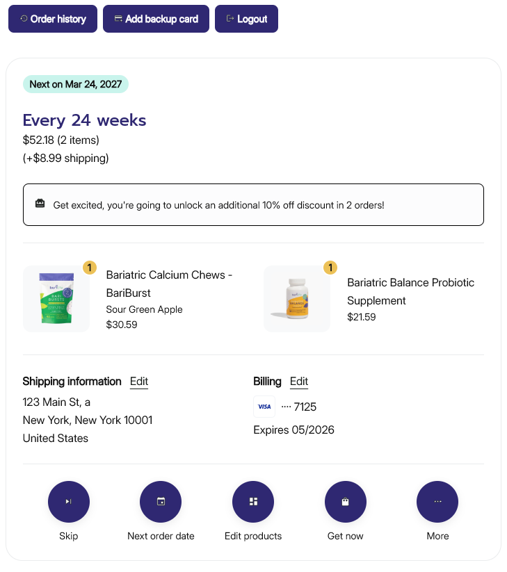 Your failed subscription order will be reprocessed and sent for fulfillment immediately after confirmation.